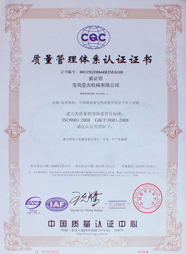 质量管理体系认证证书