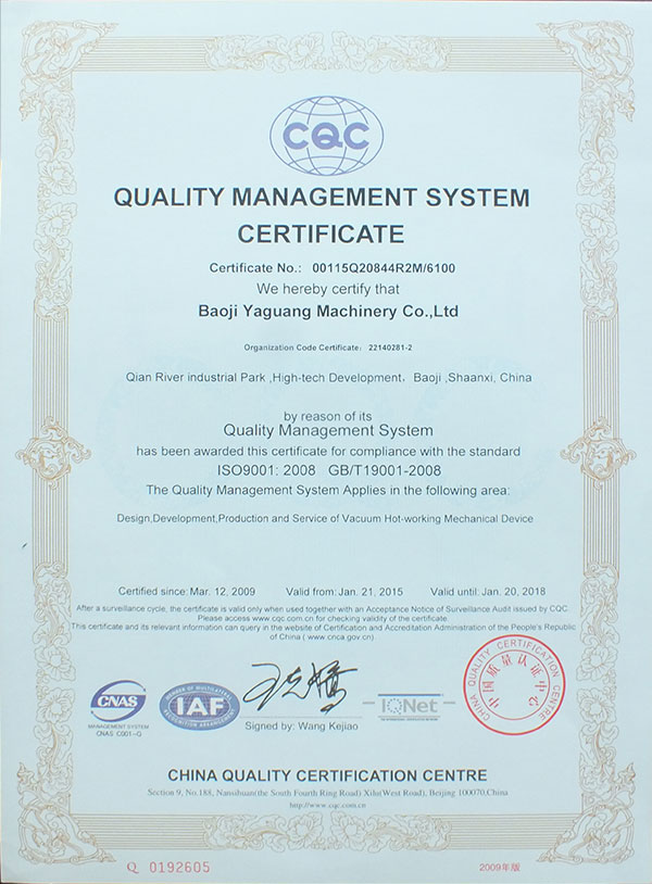 质量管理体系认证证书